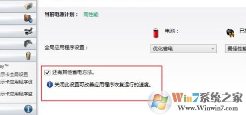 4、重启完成后,在桌面空白处单击右键,选择“显示卡属性“,然后依次点击“电源”→“可切换显示卡全部设置”,取消“还有其他省电方法”之前的复选框,然后将“已插入”修改为“最高性能”!