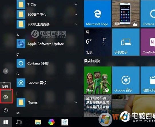 步骤一:首先点击Win10桌面左下角的开始图标,然后点击打开“设置”,如下图所示: