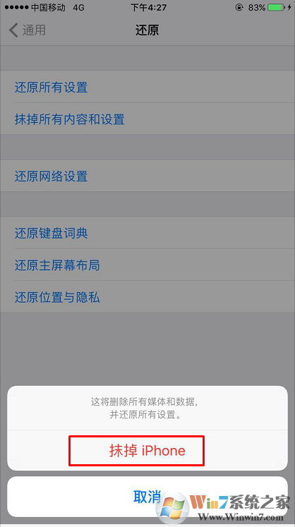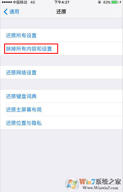 3、抹掉所有内容和设置。