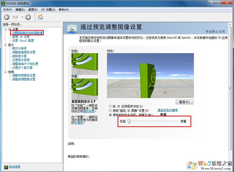 在预览图像设置中将3d滑块滑到最左边性能