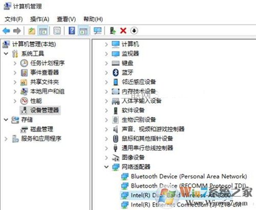 5.在设备管理器中找到你的无线网卡,比如小编的就是“Intel(R) Dual Band Wireless-AC 8260”。