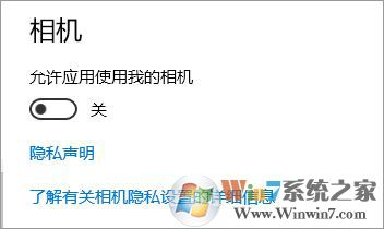 4、在右侧会显示 相机,然后我们将允许应用使用我的相机 开关关闭即可。