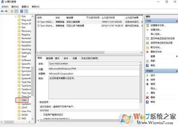 2、一次展开:任务计划程序\任务计划程序库\microsoft\windows\tpm;如图所示: