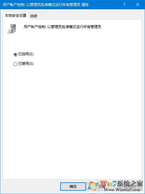 3、在右侧双击打开“用户账户控制:以管理员批准模式运行所有管理员”,选择“已启用”,点击确定,并重启计算机即可解决。