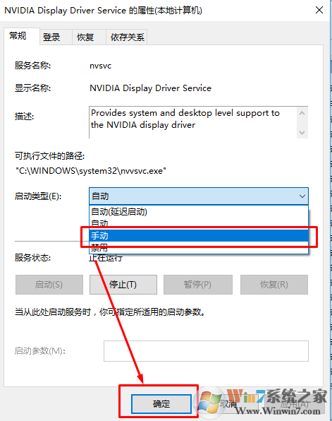 3、然后将他们的启动类型先改成手动,接着点启动,再改为自动,服务状态同样都改成启动。进行设置后,看看能否打开nvidia控制面板。