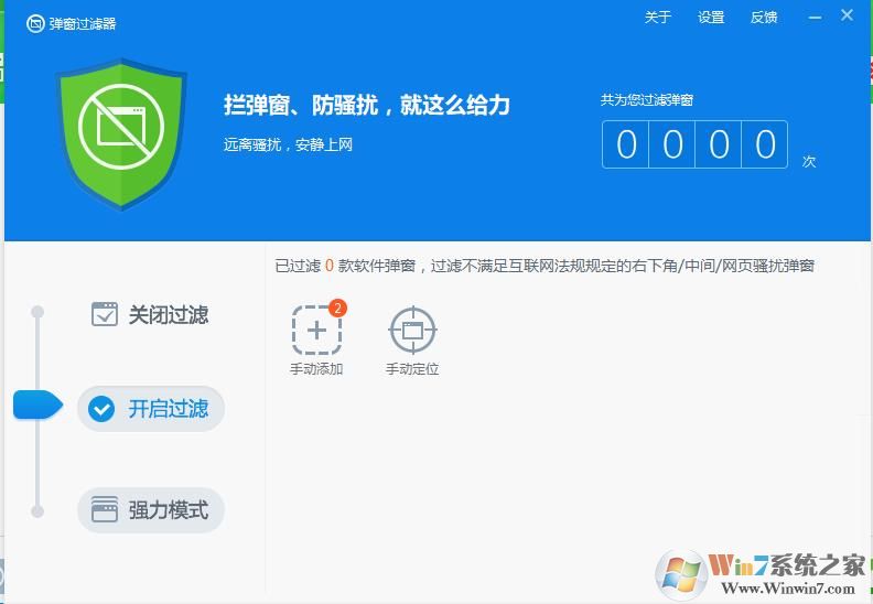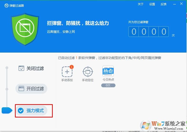 4、或者大家也可以使用强力模式,拦截弹窗更给力~(可以把一些非功能型的弹窗广告都给屏蔽)