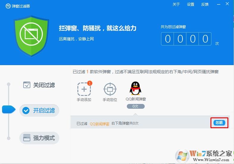 3、如果只是想取消部分弹窗,那么在当前模式下点击忽略即可,如下图所示: