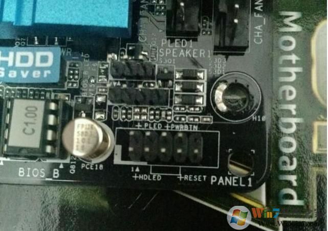 1、电源开关重启线+指示灯线,先找到主板上的插脚如下图PANEL就是了。 PLED 电源灯、HDLED硬盘指示灯、PWRBIN开关机线、RESET重启线;