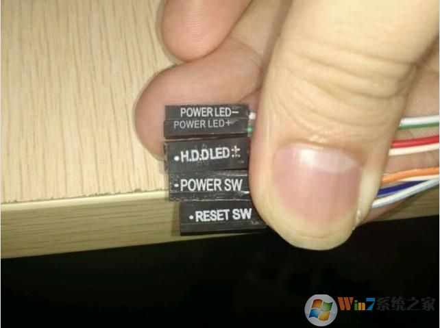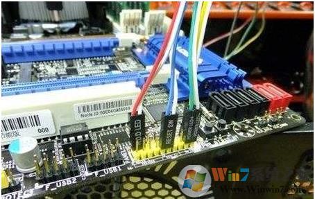 机箱上过来的线,电源和重启线不分正负极,指示灯线 (有颜色正极,白色负极)对应板上的正负两个引脚;
