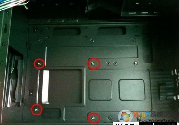 5、机箱上安装主板的位置,对应主板的固定孔,安装底部小螺丝(金黄色的铜柱螺丝,和主板一定要位置对应,不然会伤到主板或固定不牢固);