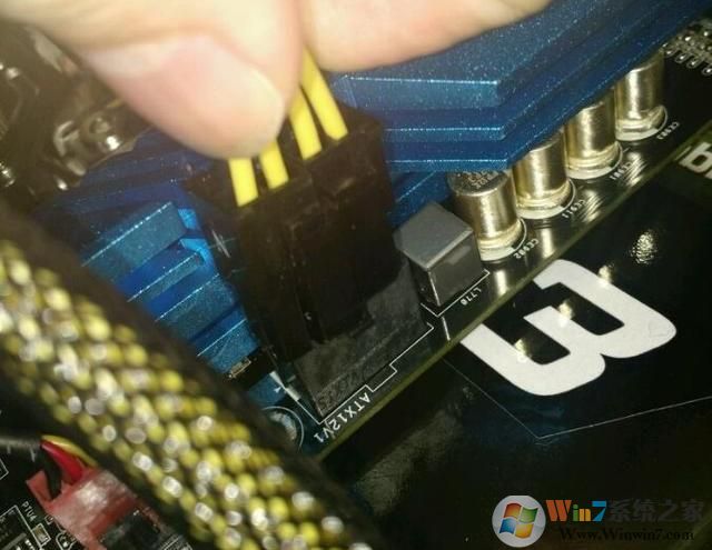 3、插上CPU供电插头,这步不能忘,否则CPU不工作,电脑开不了机。