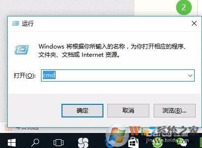 1、按下WIN+R快捷键,然后在运行中输入CMD回车,也可以在小娜搜索框搜索CMD打开;