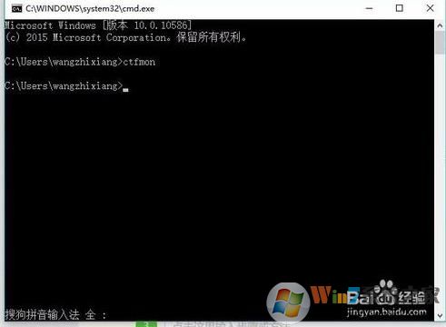 2、打开命令提示符后,我们输入:Ctfmon 回车;