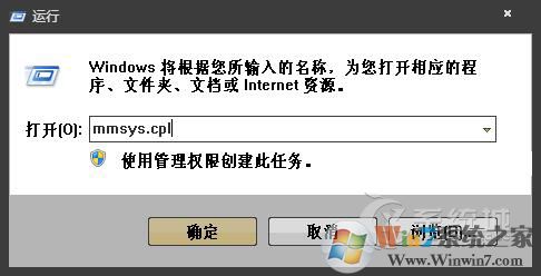 5、同样的win+r 然后输入:mmsys.cpl确定即可。如下图所示: