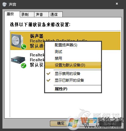 6、将默认的播放设备:耳机更改为扬声器,然后确定即可。