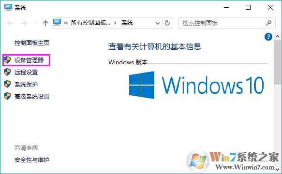 1、按下Win + Pause/Break组合键,在出现的系统属性界面,点击左上角“设备管理器”;