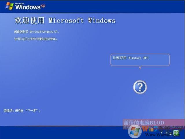 17、接下来,对XP进行一些初始配置,第一屏比尔盖茨感谢您使用Windows XP,点击下一步: