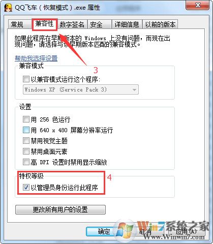 第三步:如使用第一步和第二步仍无法正常解决,可将飞车客户端强制设置成管理员权限再运行;