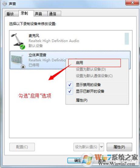 2、在下面的空白处点击鼠标右键,选择“显示禁用的设备”;