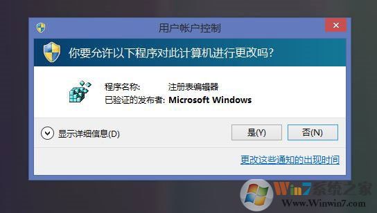 2、打开注册表编辑器(出现用户账户控制时,选择是)