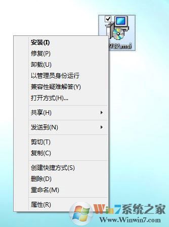这时,7-zip.msi安装包右键菜单中出现了“以管理员身份运行”的功能,即可调用管理员账户权限进行运行。