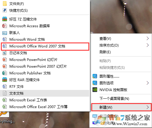 1、在桌面任意空白处右键单击,选择新建,新建一个空白文档,如图: