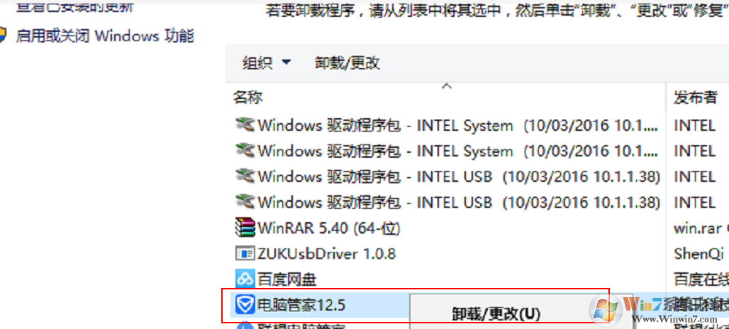 5、找到第三方相关软件(如QQ电脑管家,360安全卫士等等),点击鼠标右键,选择卸载;