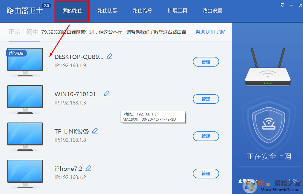 3、在我的路由器中我们就可以看见有几个设备在上网了。看看自己有几台设备连接网络,如果超出自己的设备总和那就是有人蹭网了。建议更换wifi密码。