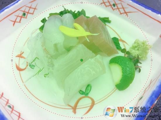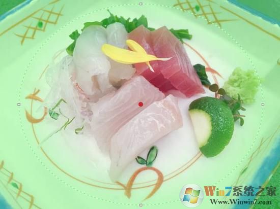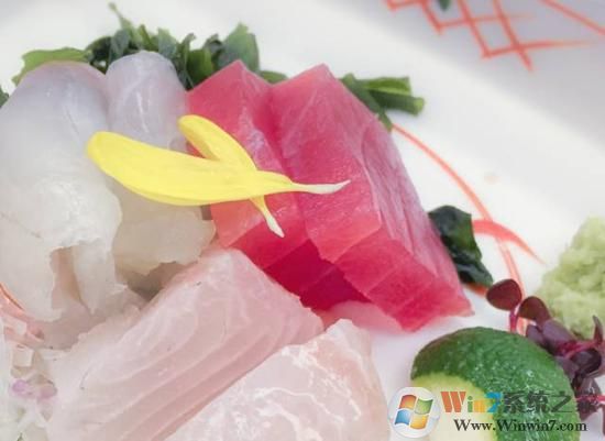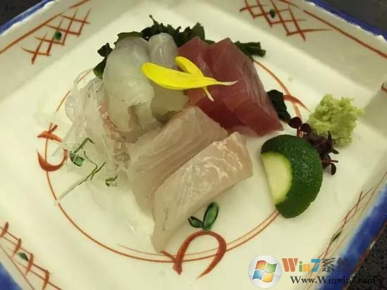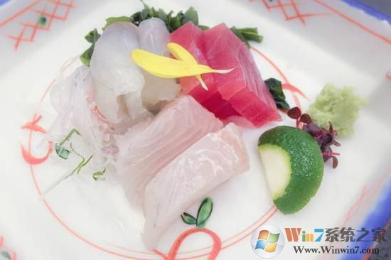 照片收到了环境和器材的限制,所以曝光、色温都不怎么准,虽然刺身的样子确实比中餐好(真没辙),但是依然拍出不档次。所以在Phothsop里简单修一下,就能达到下面这个效果。
