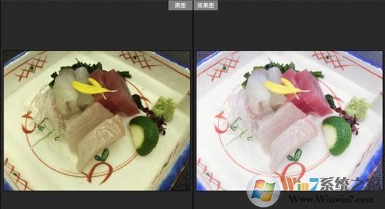 选择界面左上方工具栏中的白平衡工具——形状是一个滴管。然后在画面的白色处,比如盘子上单击点选,软件会根据此处为基准来校准色温,你会看到照片的颜色会发生变化。