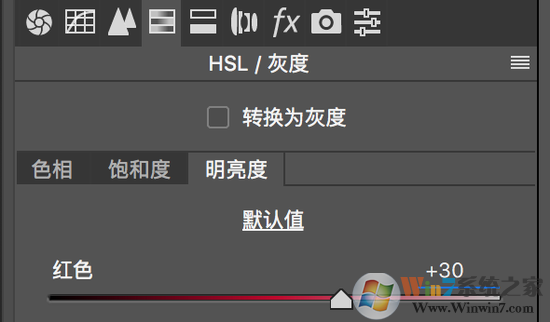 之后,我进入“HSL/灰度”面板中,将红色的明亮度提升到+30,这样右上方的鱼肉看上去会更亮。
