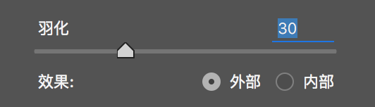 将羽化设置为30左右,然后效果改为外部,你会发现绿色区域反转到圆圈外部,接下来我就可以调整参数,来控制照片边缘的表现了。