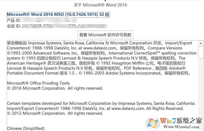 打开任一Office组件,文件-账户-关于xx,即可打开如下图所示窗口,显示为32位。