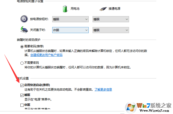 3、取消“启用快速启动”功能,设置完成后重启计算机。