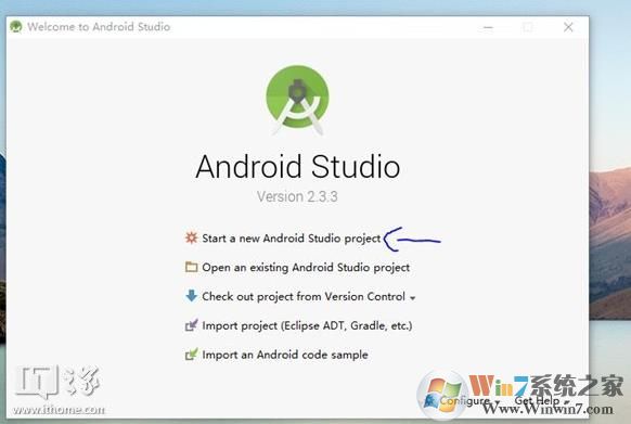 4、出现如下界面,选择第一个“start anew android studio project ”。如图