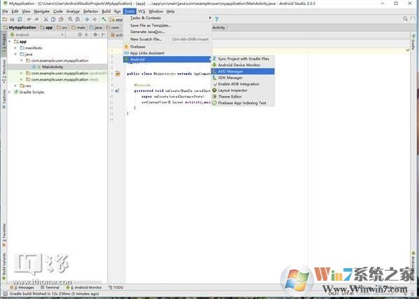 在主界面上,点击tools-Android-AVD Manager(如图)