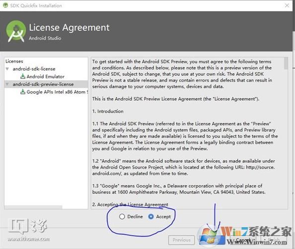 在弹出来的界面上选择accept,然后点击Android-sdk-preview-license然后再次点击accept,然后next(如图),然后next;