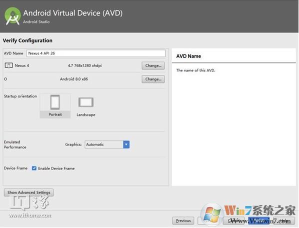选择pixel XL(其他的都可以,我这里鉴于屏幕分辨率选择nexus4),然后next;