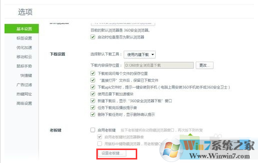 除了360浏览器,其他浏览器一般也都可以设置,大家仔细在设置中查找一下就可以设置浏览器的老板键了。