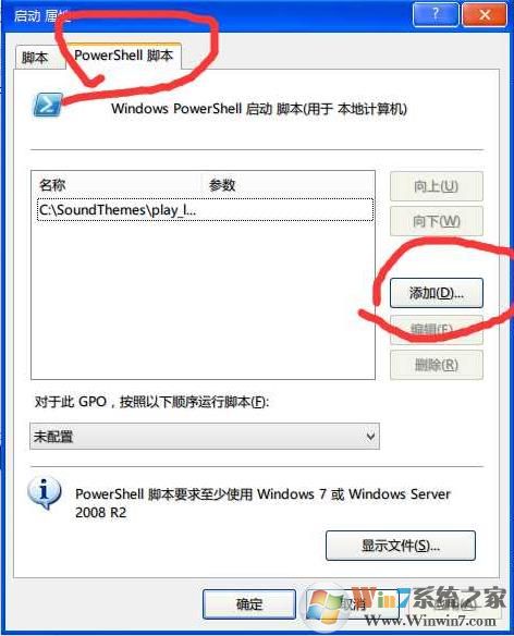 9. 双击启动,关机同理,选择“Powershell 脚本”选项卡,选择添加