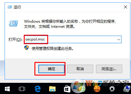 1、首先,按住键盘,Windows+R,Windows键就是有是个方块的图形按键,Alt旁边。按下之后,在里头输入:secpol.msc,如图所示: