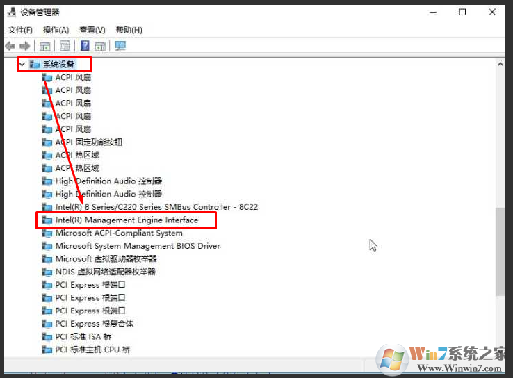 在打开界面中,点击系统设备----Intel(R) Management Engine Interface,右键选择卸载,如下图所示:
