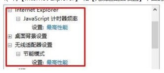 4、将【Internet Explorer】 和【无线适配器设置】下面的选项设置为“最高性能”,点击确定即可。