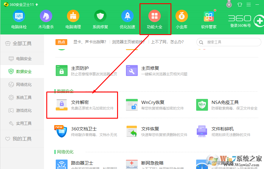 2、找到功能大全----文件解密。