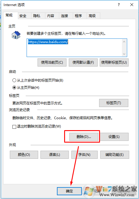 2、点击浏览历史记录下的【删除】按钮;
