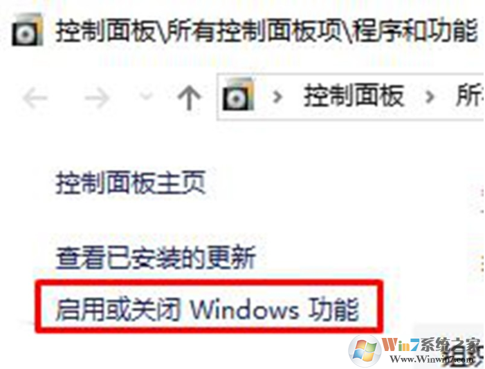 2、在左侧点击【启用或关闭Windows 功能】;