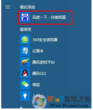 3、添加完成后,我们打开开始菜单,就可以看到网站了,这样我们浏览起来会非常的方便。