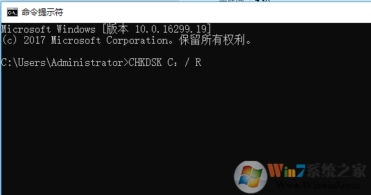 - 在“命令提示符”窗口中键入CHKDSK C:/ R,然后按Enter键。