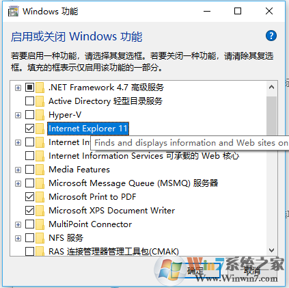 总结:以上就是win10系统启用和关闭windows功能中找不到ie11组件的解决方法了,希望对大家有帮助。