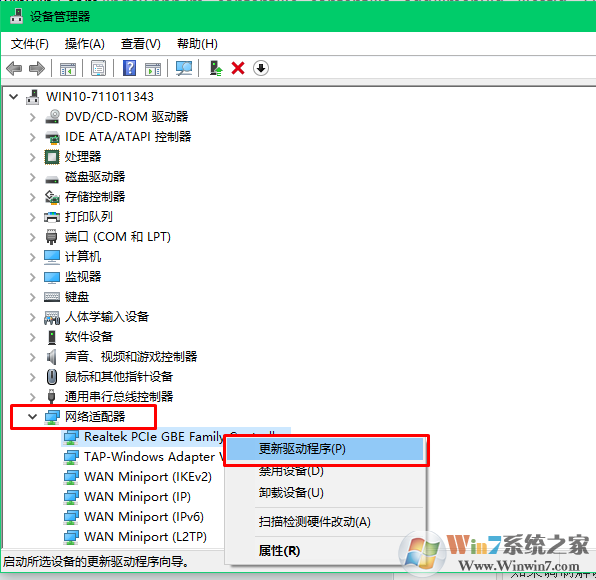 - 找到网络适??配器,然后右键单击您的网络适配器。